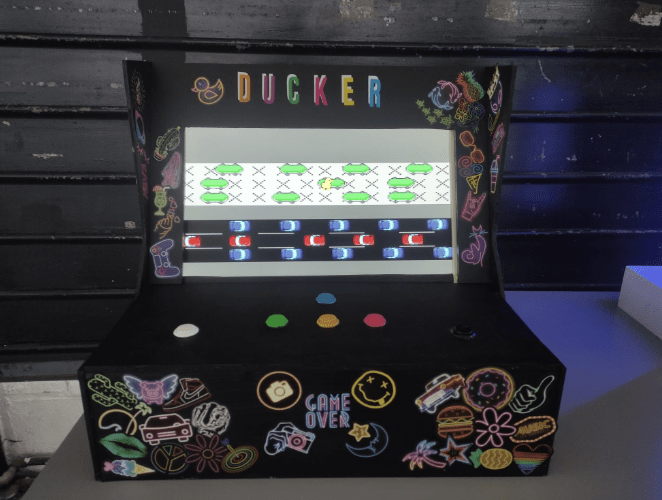 ‘Ducker’ is my modern take on the classic 1980s arcade game Frogger, which I built with Processing and Arduino.